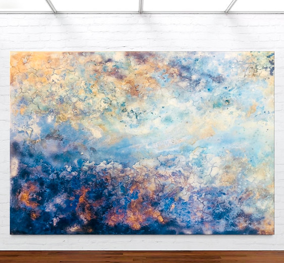 La matière évoque le ciel et le mouvement des nuages — non comme image, mais comme sensation.